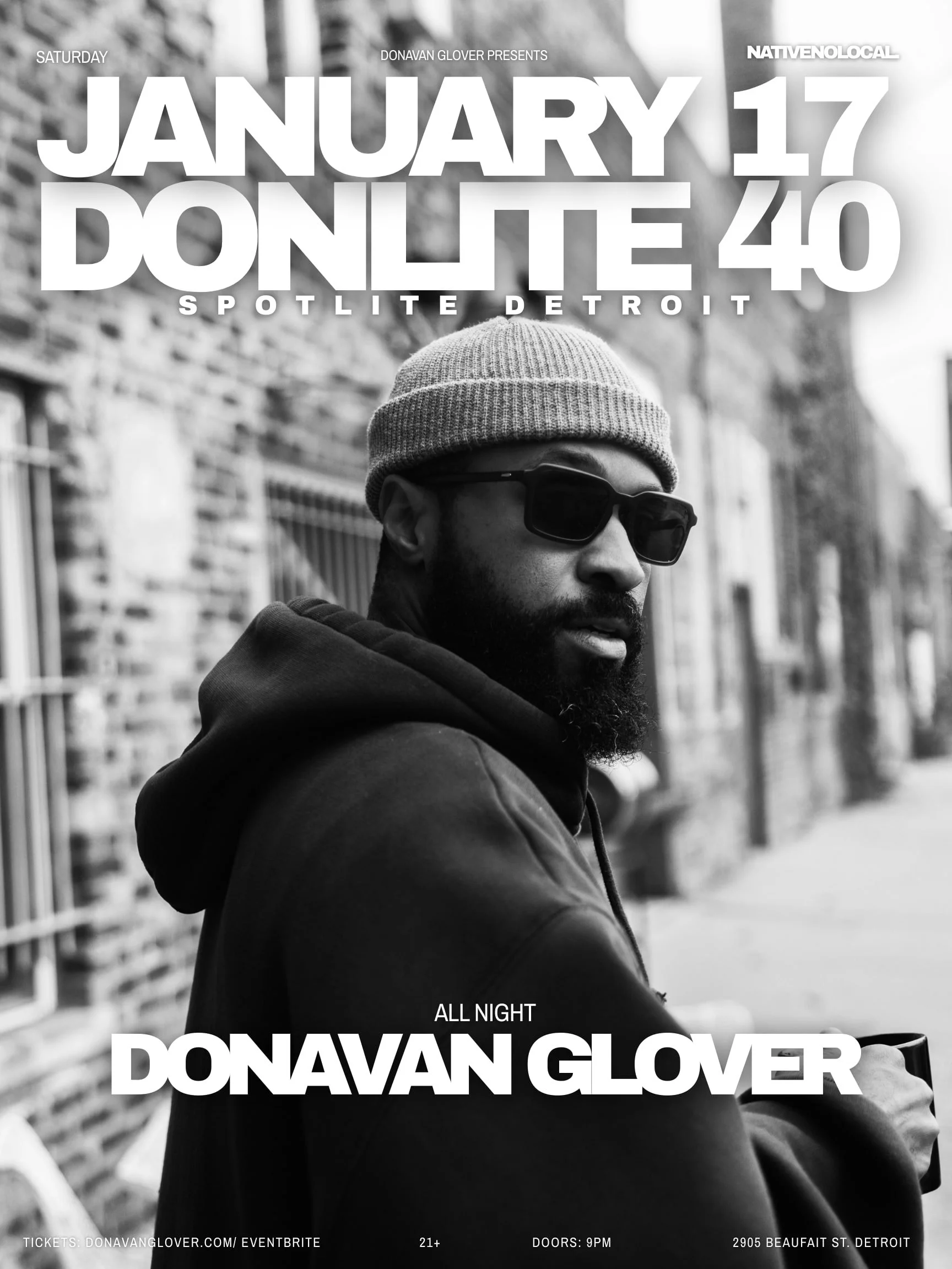 JANUARY 17TH — DONLITE 40 w DONAVAN GLOVER ( ALL NIGHT)